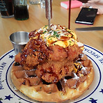 치킨와플 무슨…밥 베이컨스테이크…어쩌구 미국식까르보나라…? 한 메뉴당 1.5인분이라더니 그만큼은 못된다 1.2인분정도인듯 치킨와플은 걱정반기대반으로 갔는데 맛있었다 와플+치킨+치즈소스+시럽 의 조합인데 약간의 단짠과 적절한 느끼함이 좋았달지 전체적으로 맥주가 땡기는 메뉴구성 간은 조금 짠 편 음료수를 시키면 유리병으로 나온다.(3천원) 오후4시~5시 준비기간 매장 깔끔하고 요란하지 않음 신논현역 근처 레스모아 뒤쪽…? 우리손만두인가 그 가게 옆임 자세한 주소는 ggrks 맛있습니다.